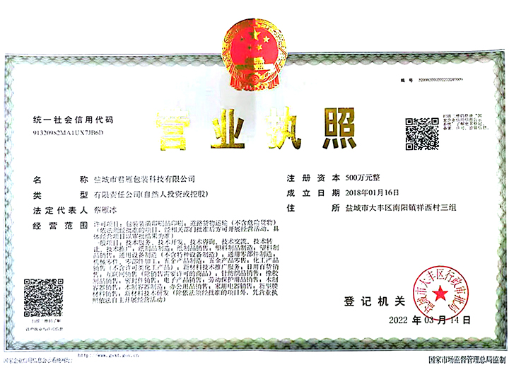 企業(yè)資質(zhì)鹽城市君雁包裝科技有限公司,始創(chuàng)于2021年,公司面積20000平方米。公司位于中國鹽城大豐區(qū)南陽鎮(zhèn)祥西村三組,是一家集研發(fā)、生產(chǎn)、銷售為一體的包裝材料企業(yè),產(chǎn)品涉及:外包裝紙箱,防水紙箱,涂蠟紙箱,浸蠟紙箱,冷柜紙箱,木包裝箱,免熏蒸木包裝箱,木托盤,EPE珍珠棉,珍珠棉袋,EVA板材,EVA大板,包裝海綿等包裝材料。包裝設(shè)計制造符合API、ANSI、ASTM、NACE、ISO、EN、BS、DIN、MSS SP等國際標準的要求,在鹽城以及周邊城市的市場上有良好的評價。公司擁有先進的生產(chǎn)設(shè)備,嚴格的管理制度和高素質(zhì)的人才團隊,保證了高質(zhì)量的產(chǎn)品和良好的服務(wù),同時我司還可以根據(jù)客戶特殊工況需求,提供全套包裝技術(shù)解決方案。